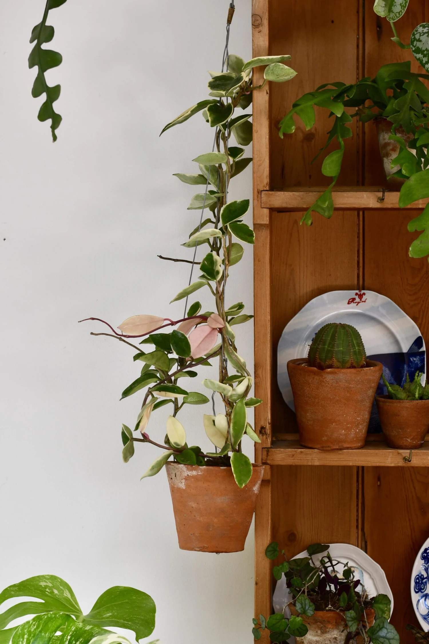 We really love this wonderfully coloured hanging houseplant, it’s delicate and delightfully variegated. Hoya Carnosa, or wax plant is a beautiful small hanging houseplant with long graceful stems covered in waxy leaves. It is a type of vine, growing to 1m long if kept in the right conditions.