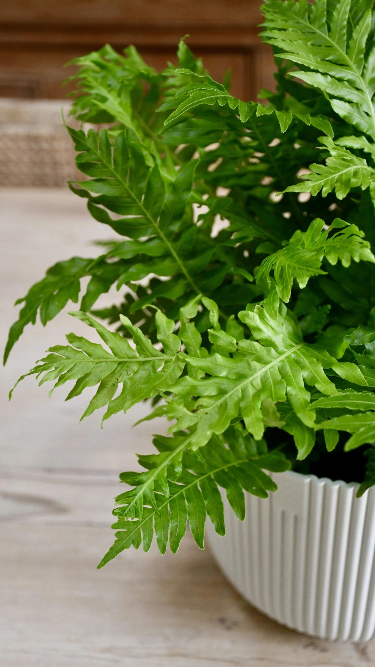 Put your Fern into a hanging pot or it can look great on a pedestal – choose a pot that is wide but quite shallow to suit the shape of this fern.