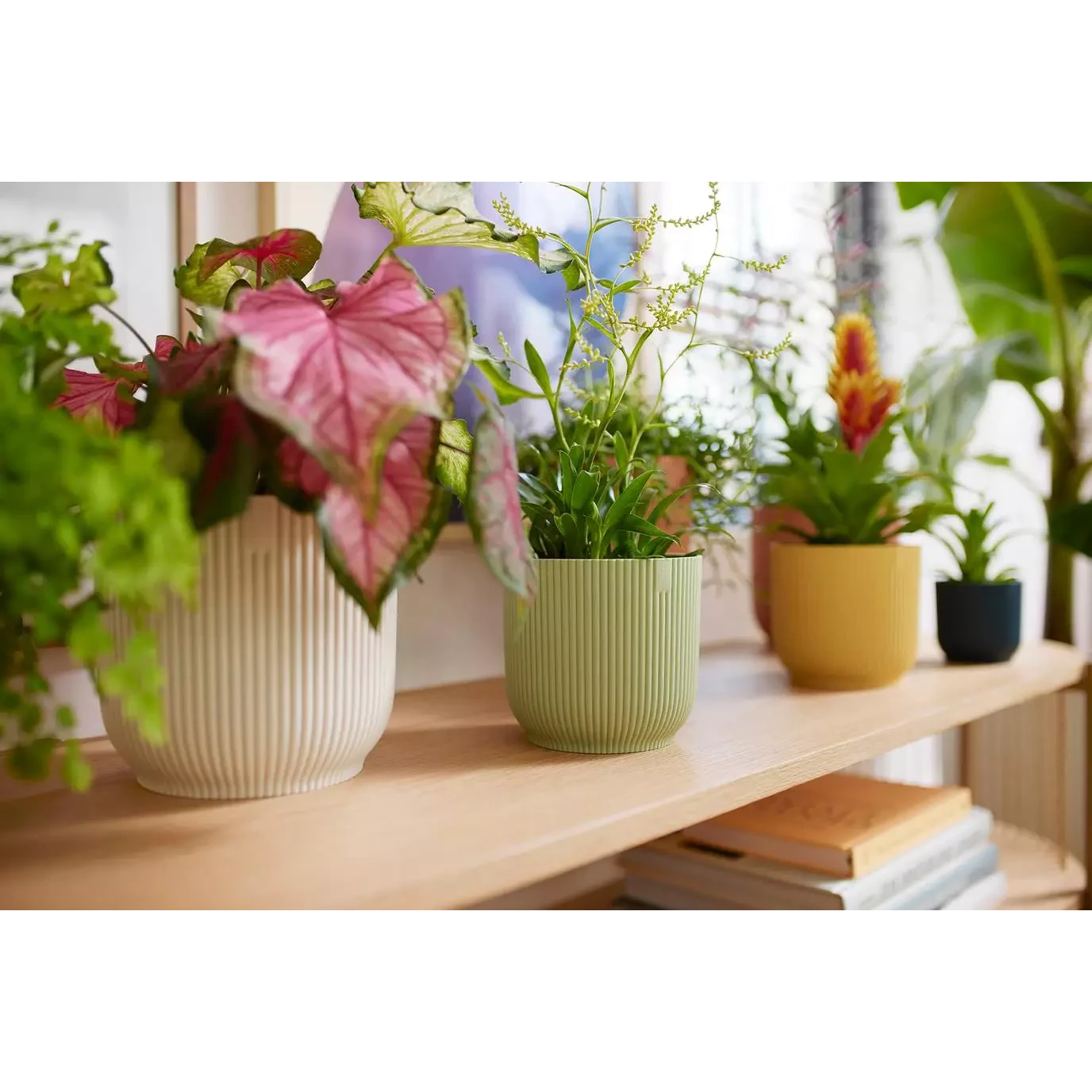 The new indoor vibes family fits perfectly into the vibes of a cosy, harmonious, fashionable, friendly interior. The pots will bring out the best in your indoor plants with their slightly rounded body, soft tones and decorative pattern.